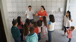 Hoje na Escola Dominical da Ipb Vila Gerti fizemos uma singela homenagem comemorando o dia do diácono e os repórteres mirins entrevistaram o diácono William Cagliari ... Foi muito divertido ...